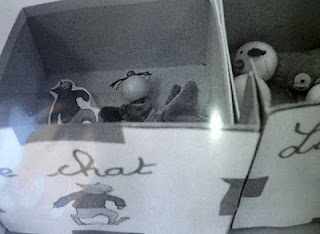 - En fin de séance, les maîtresses montrent aux enfants les boîtes pour ranger les marionnettes. Dans les boîtes, il y aura plusieurs marionnettes du même personnage.Les stagiaires cherchent à renforcer l'idée "L'enfant qui tient cette marionnette devient ce personnage."